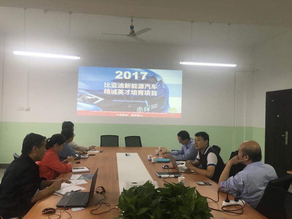 9月26日,比亚迪新能源汽车校企合作项目考察组王健技术总监等一行三人莅临德信体育官网,对与公司展开新能源汽车校企合作项目进行商讨,德信体育官网经理张耀虎、副经理杨亚萍参加了本次交流会,本次交流会在德信体育官网会议室举行。