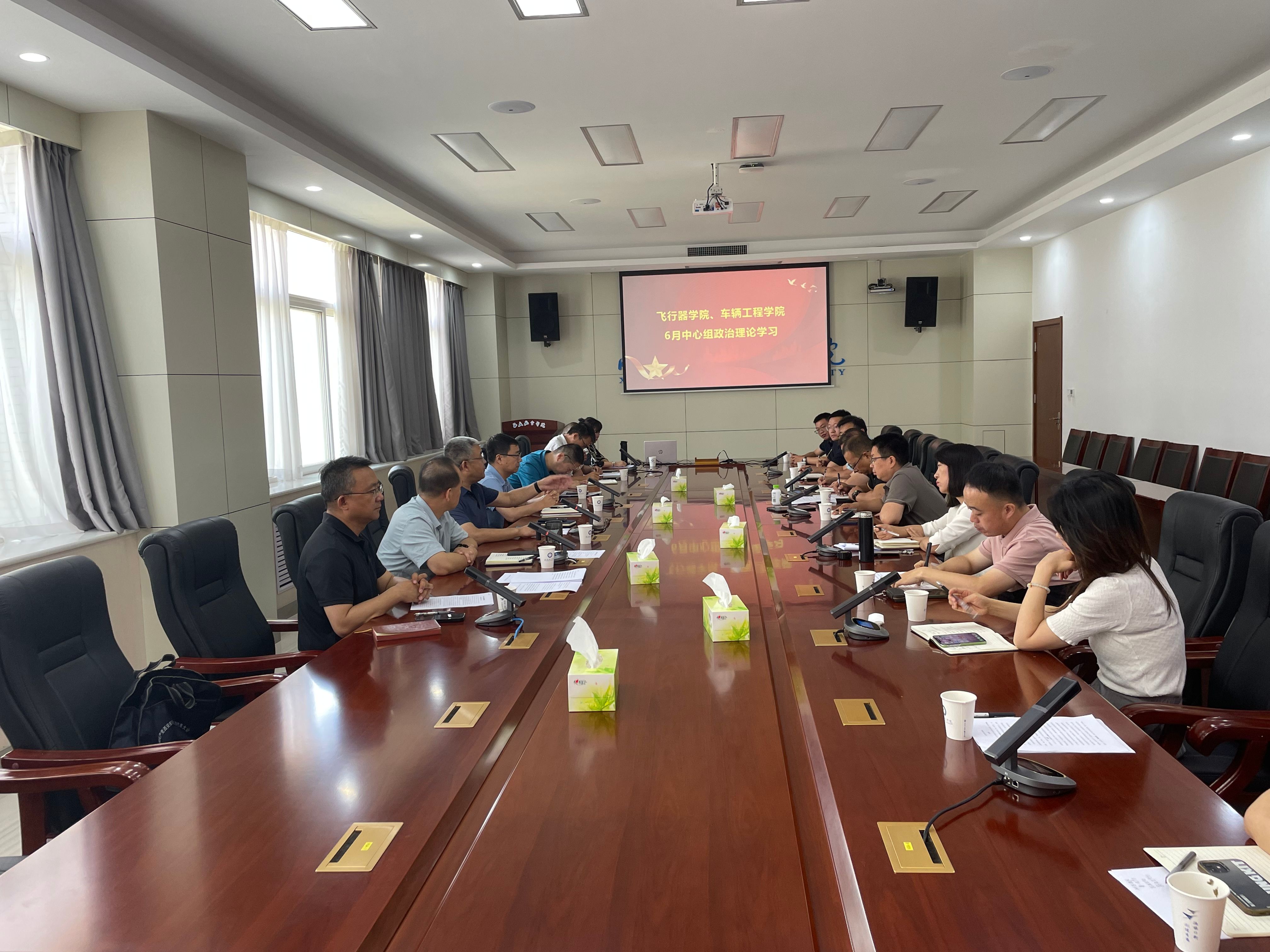 6月13日上午,飞行器公司与德信体育官网理论学习中心组在阎良校区第二会议室举行主题联学。两公司理论中心组全体成员参加了学习。董事长祁玉龙、党政办主任李永刚出席并开展巡学指导。