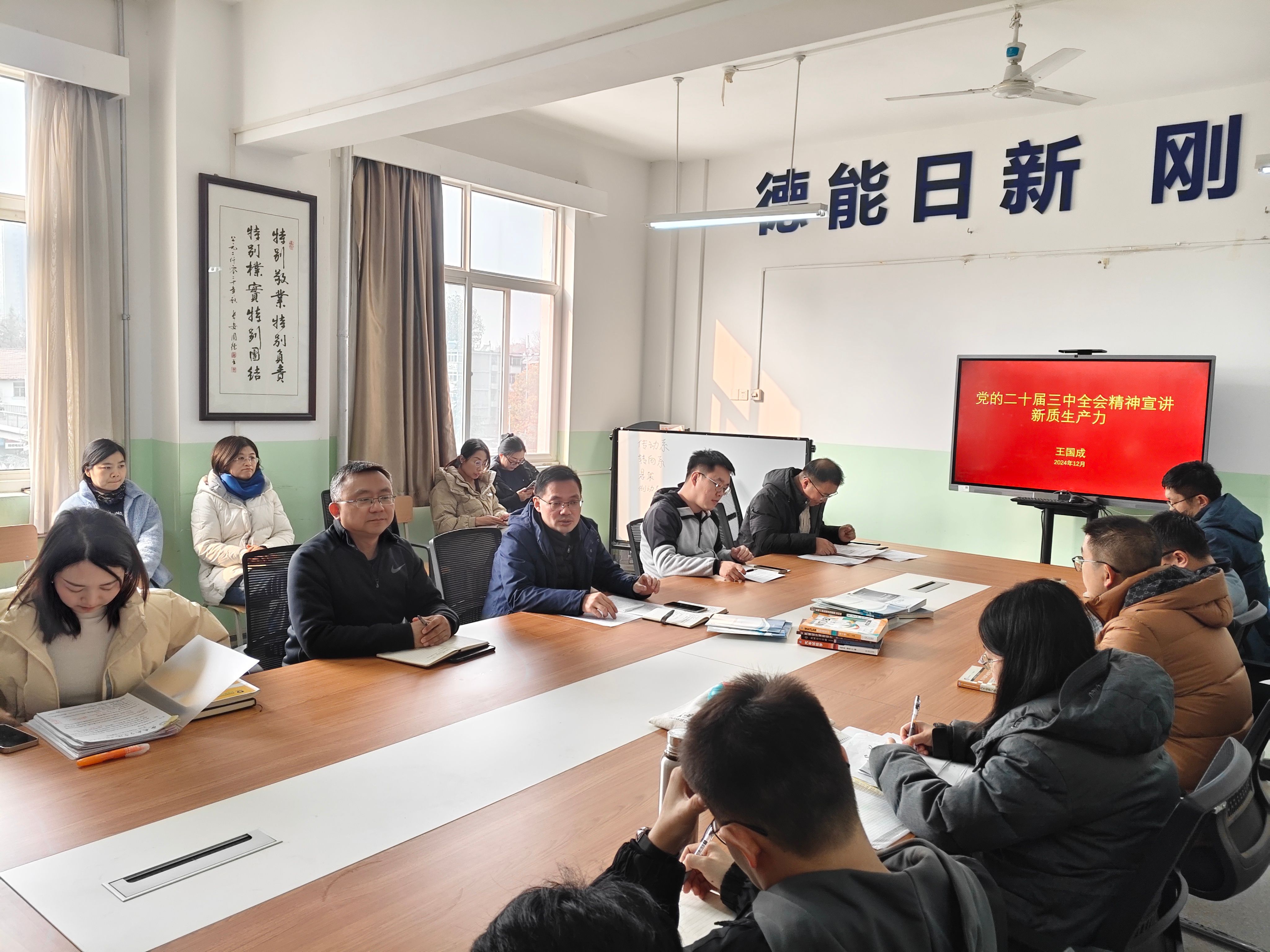 会上,王国成以“二十届三中全会精神宣讲——新质生产力”为题,从新质生产力的概念、逻辑内涵、发展新质生产力需要重点解决的战略性任务、实施路径等方面,进行系统宣讲和深入阐释。随后,周小勇带领全体教工党员学习了习近平新时代中国特色社会主义思想、全国教育大会精神、中央、省委和公司重要会议文件精神等内容。最后,周小勇、周扬进行了学习交流发言。