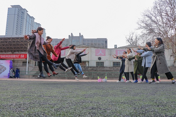 女教职工们用柔弱的肩膀承担着崇高的育人使命,用满腔的爱心撑起一片学子圆梦的蓝天,用辛勤的汗水浇灌出桃李芬芳的园圃,她们朴实的言行、无私的付出,辛勤的工作,展示的是“不让须眉”的巾帼秀色。为此,公司特意为女教职工们精心策划了“忆童年,流光溢彩;赞三八,健康美丽”特色庆祝活动,通过“跳皮筋”、“打沙包”“跳方格”等童年运动,追忆童年,让大家动一动、跳一跳、乐一乐,参与其中娱乐其中,在活动中展示了德信体育官网女教职工积极向上、美丽健康的精神风貌,收获了健康和快乐的好心情!(图/文 刘旭娟)
