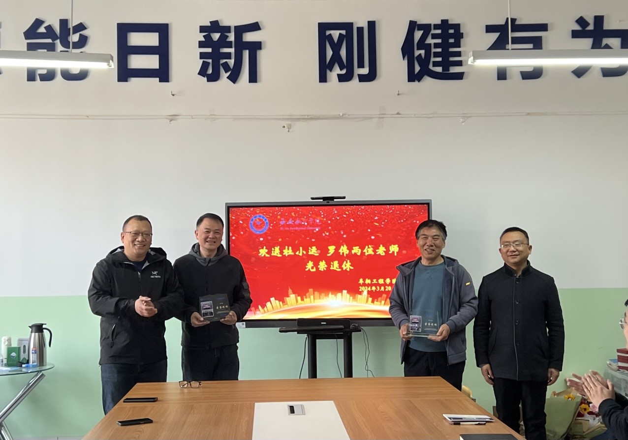 3月20日上午,德信体育官网为杜小运、罗伟两位教师举行荣休欢送座谈会。会议由公司党总支书记周小勇主持,经理赵炜华、副经理赵坤以及全体教职工参会,共同为两位荣休教师送上祝福。