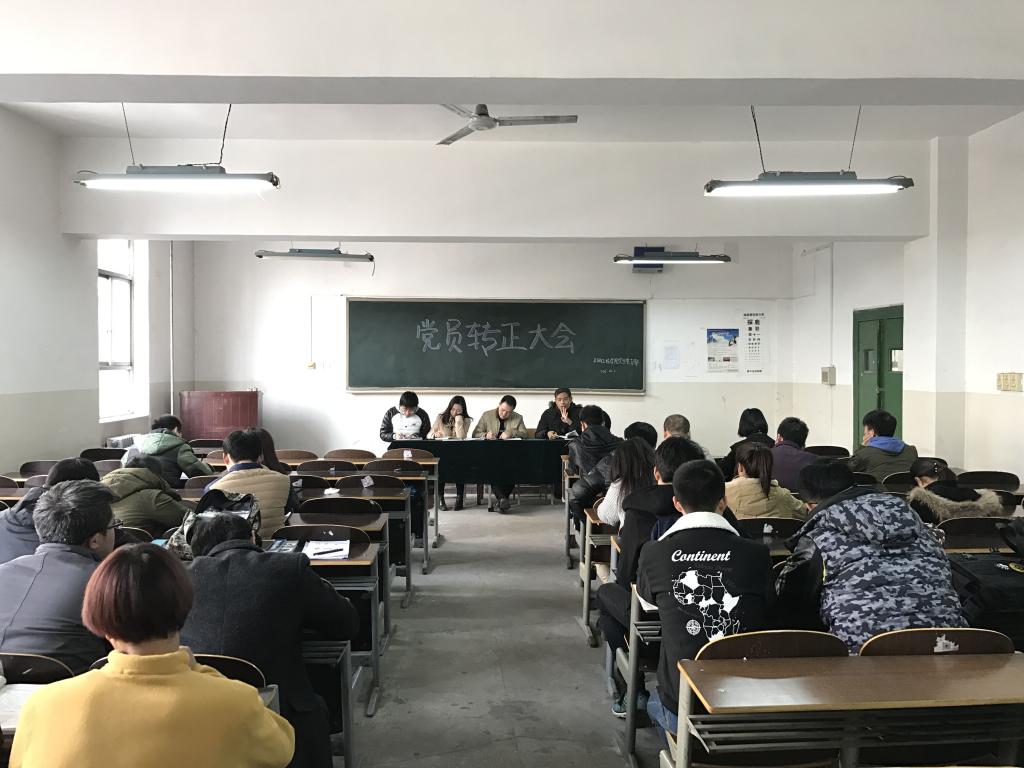 大会按照党章规定的程序,讨论并投票表决通过了9名预备党员按期转为正式党员的相关事宜,通过支部决议并报上级党组织批准。转正大会后员工党支部书记罗伟首先对各位预备党员表示祝贺,并要求全体党员以学业为本,务必努力提升自身学习成绩,为全体同学做好榜样,同时罗伟提醒全体党员在毕业时一定要注意自己党组织关系的转接,毕业后也应按时交纳党费、积极参加组织活动。