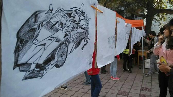 为培养同学们汽车专业兴趣,提高汽车外观手绘设计水平,11月20日中午, 车辆与医电工程系团总支举办了汽车手绘设计大赛,并在综合第一食堂门前进行了作品展示。