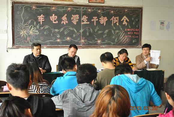 3月20日下午4点,车辆与医电工程系召开2012-2013学年第二学期全体员工会干部大会。参加会议的有党总支书记邓北川、员工管理室主任罗伟及所有辅导员,会议由罗伟主持。