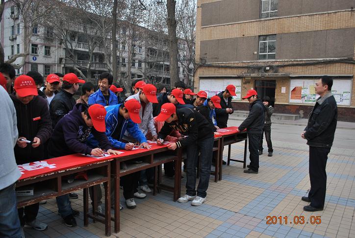 (撰稿仇建华 摄影季新建)为迎接西安世园会及“向雷锋同志学习”,3月5日上午,车辆与医电工程系团总支及青年志愿者协会,在校办公楼前广场隆重举行了“迎世园 讲文明 树新风”签名仪式并开展了学雷锋活动。系员工管理室主任罗伟老师,辅导员仇建华老师与部分员工干部参加了本次签名仪式及学雷锋活动。
