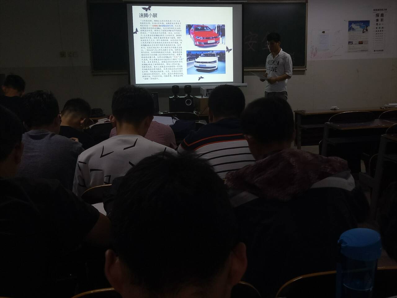 本次活动以PPT讲述的形式进行。活动中,数位讲解者通过他们所搜集的资料向广大同学介绍了目前汽车领域的发展趋势及各大汽车生产商的最先进技术。同学们听得如痴如醉并在介绍结束后就自己感兴趣的问题与介绍者展开讨论交流,现场气氛十分热烈。