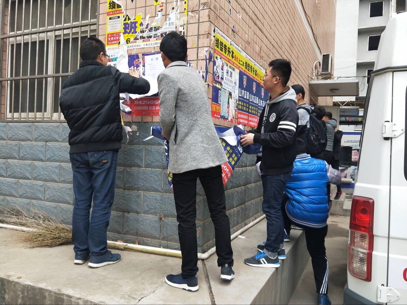 中午下课后,志愿者们在教学主楼下集合并按负责人要求分为两组,分别进行教学区和生活区的小广告清理。广大志愿者们在分组后立刻行动起来,使用小刀等工具努力将墙壁和电线杆上的小广告清理干净还广大师生一个洁净的校园。同学们额头上的汗滴,使我们看到了雷锋精神在当代老员工中的继承和发扬。通过广大志愿者两个多小时的不懈努力,使校园内小广告被清理干净。
