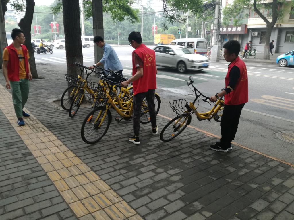 志愿者们秉承着“互相帮助、助人自助、无私奉献、不求回报”的志愿者精神早早来到了土门周边共享单车较多的地铁口及公交站。广大志愿者们一起将不同品牌的共享单车分类,随后又将每一品牌分类放置在合理区域。如此一来,既方便了共享单车使用者的存取,也解决了共享单车随意摆放阻挡行人通行及不便于环卫工人打扫等问题。