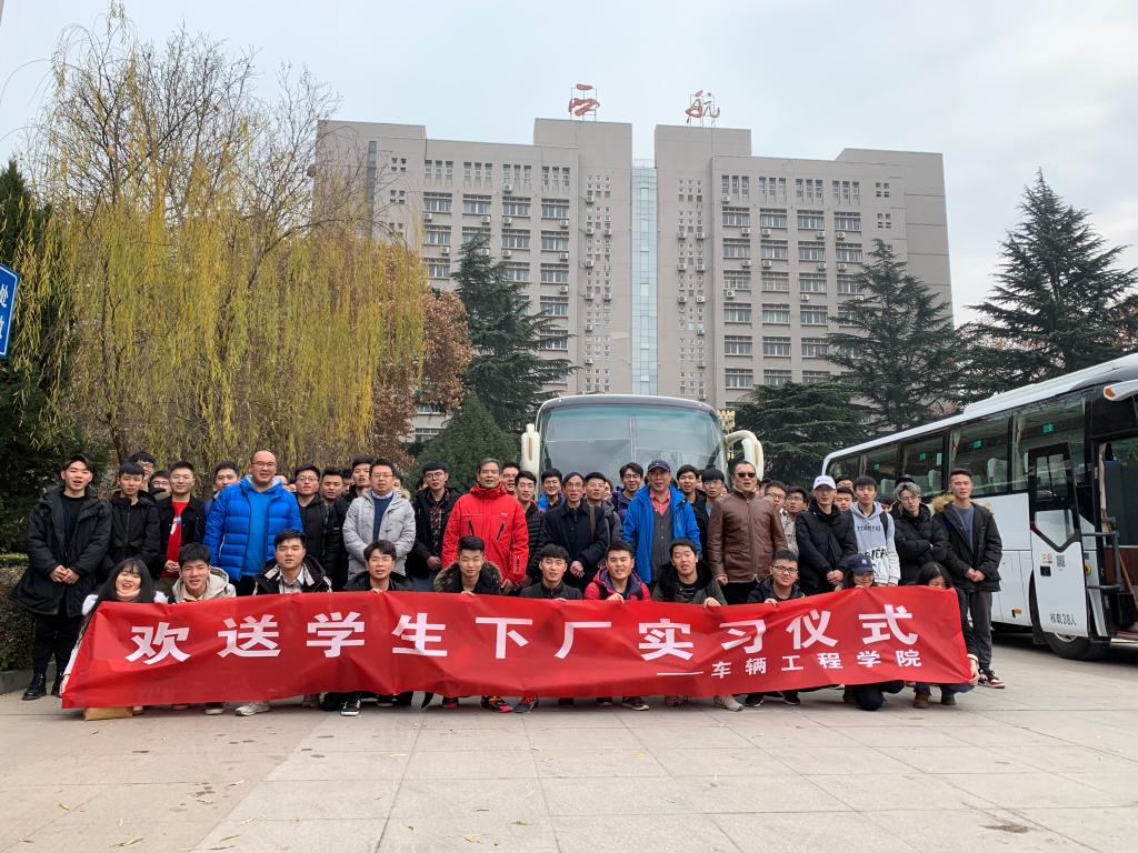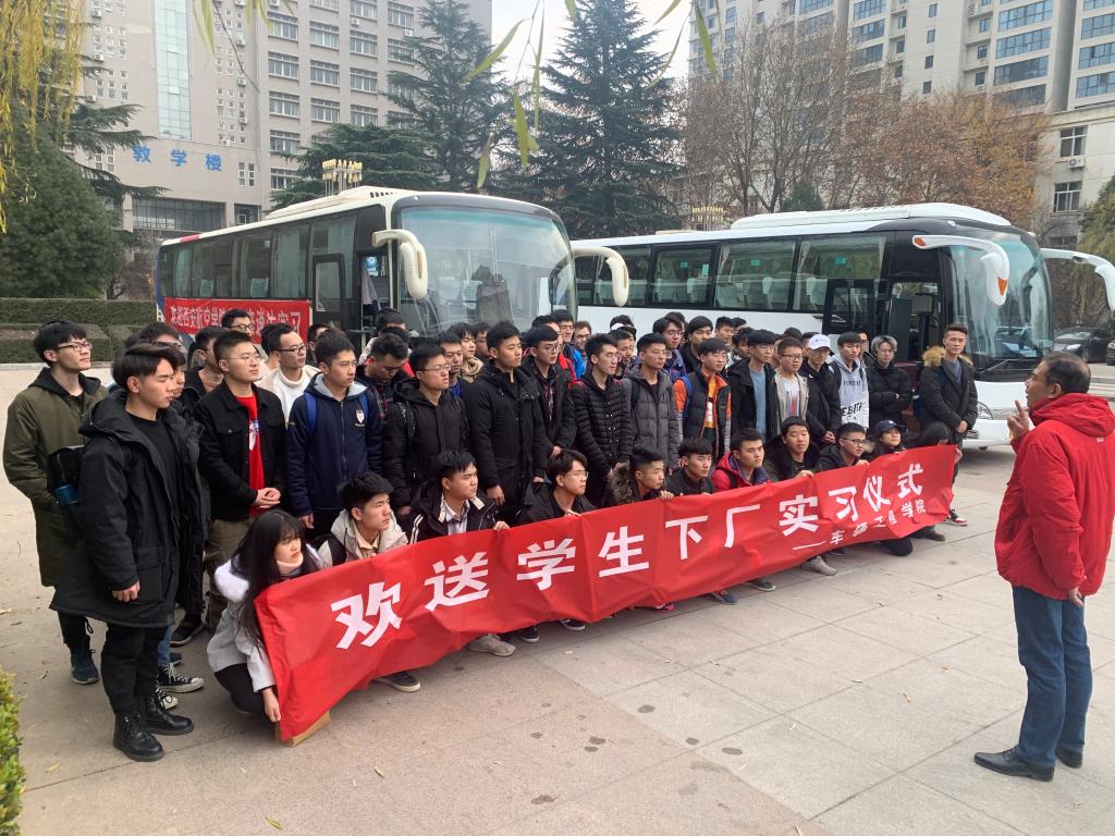 德信体育官网2017届车辆工程专业员工赴河南省三门峡市速达电动车有限公司进行为期4周的专业实习。12月16日于公司喷泉广场举行了热烈的欢送仪式。速达电动车有限公司人力资源部部长熊小伟随车一同前来迎接实习的员工,公司党总支书记邓北川、副经理赵炜华、教研室主任王鑫等一同为员工送行。