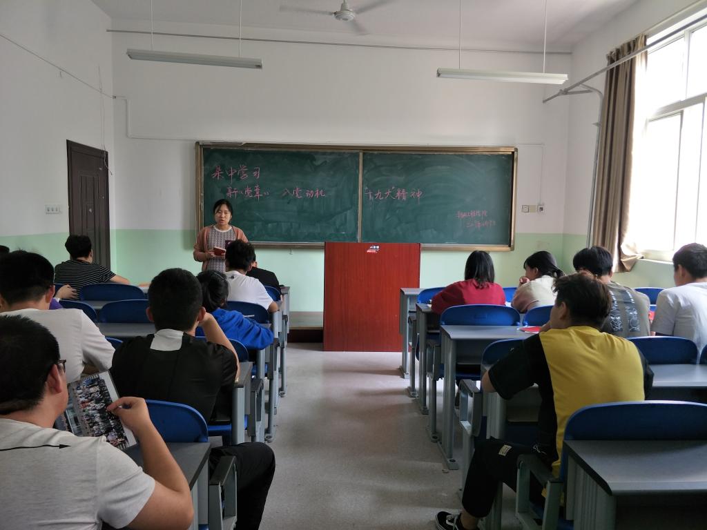 员工支部组织委员于思月老师带领大家分别学习了党章及十九大精神并与广大同学交流了入党动机。同学们对个人入党动机都做了深入阐释,分享了自己的入党故事。通过此次讨论学习,同学们加深了对中国共产党的了解,为接下来的学习奠定了基础。