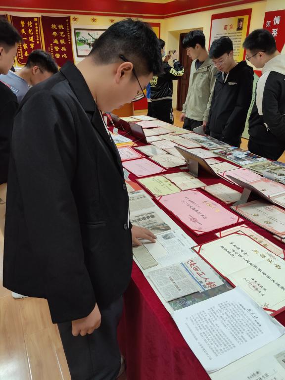 参观中,同学们踊跃发问、认真听讲,李新建老师细心讲解,从介绍他如何开始拥军,到拥军的根本意义是什么,他感人至深的拥军经历让在场的每一位同学体会到了一位一心从军,心系军情,将自己的命运与军队紧密联系在一起的退伍军人的强烈拥军梦。