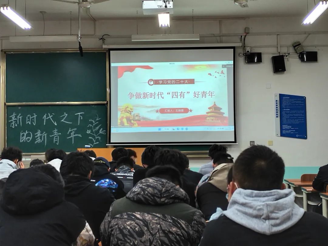 活动最后,王晓晨同志对此次活动进行了总结,对各位提出了殷切期望,希望各位同学能时刻牢记党的二十大精神,听党话,跟党走,对党自信、忠诚,树立正确的价值观念,端正思想作风,树立正确政治方向,争做新时代的“四有”好青年。本次活动在各位同学中引起巨大反响,参与同学纷纷表示,作为新时代下的新青年,一定要为中国梦的伟大复兴、国家富强做出更多贡献,让青春在全面建设社会主义现代化国家的火热实践中绽放绚丽之花。