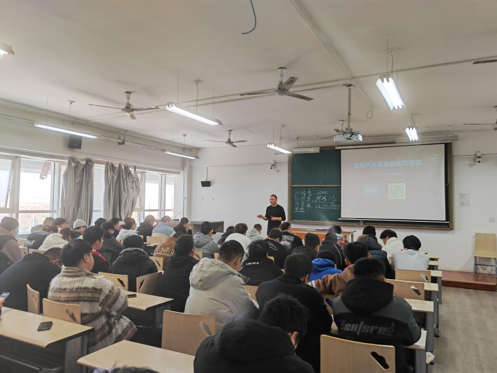招聘现场,校招经理陈圆圆首先通过播放企业短片,简单介绍宝能集团的企业文化、高端制造产品、研究院情况等。接着介绍了能集团西安新能源汽车产业项目。最后针对本次进校招聘的具体岗位及要求作介绍,并针对同学们的疑问进行答疑。