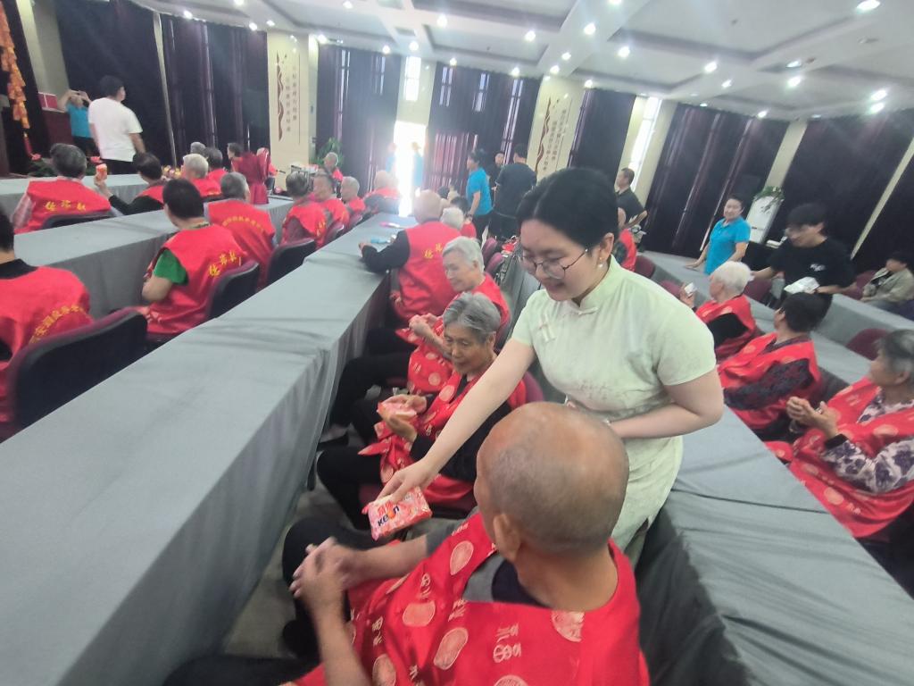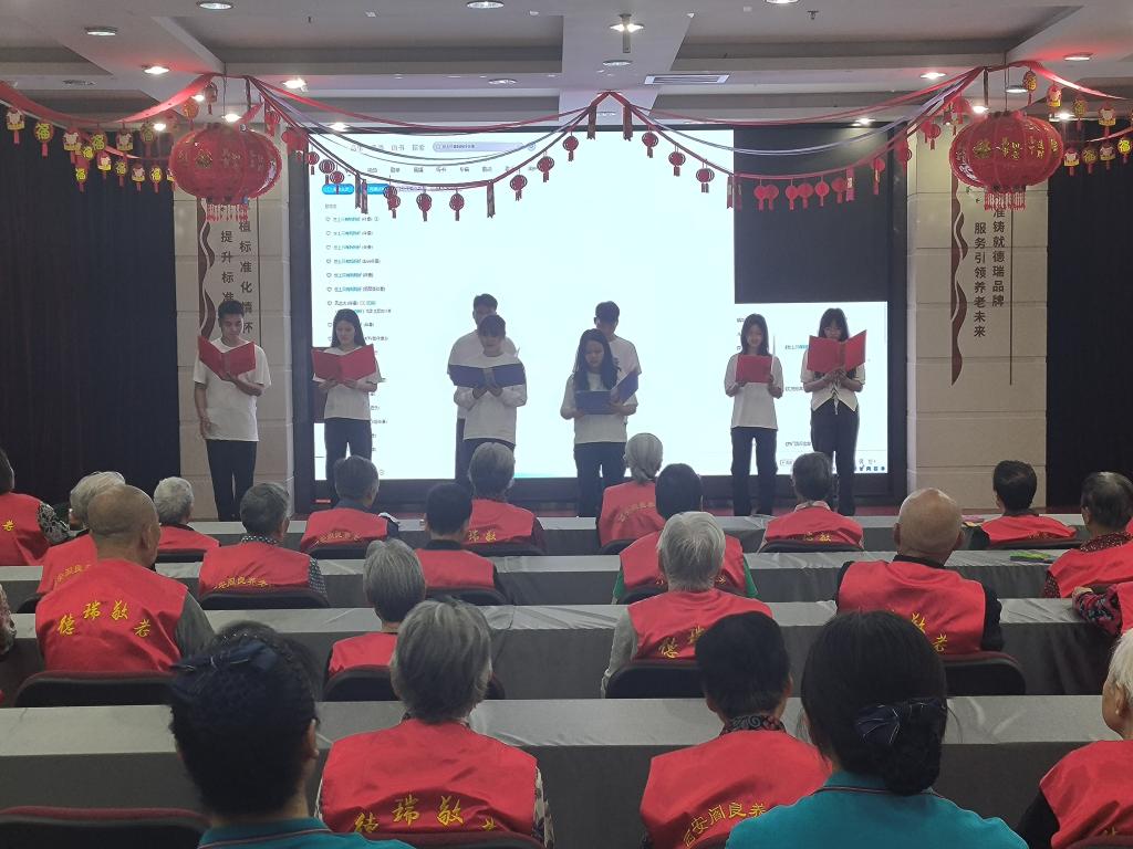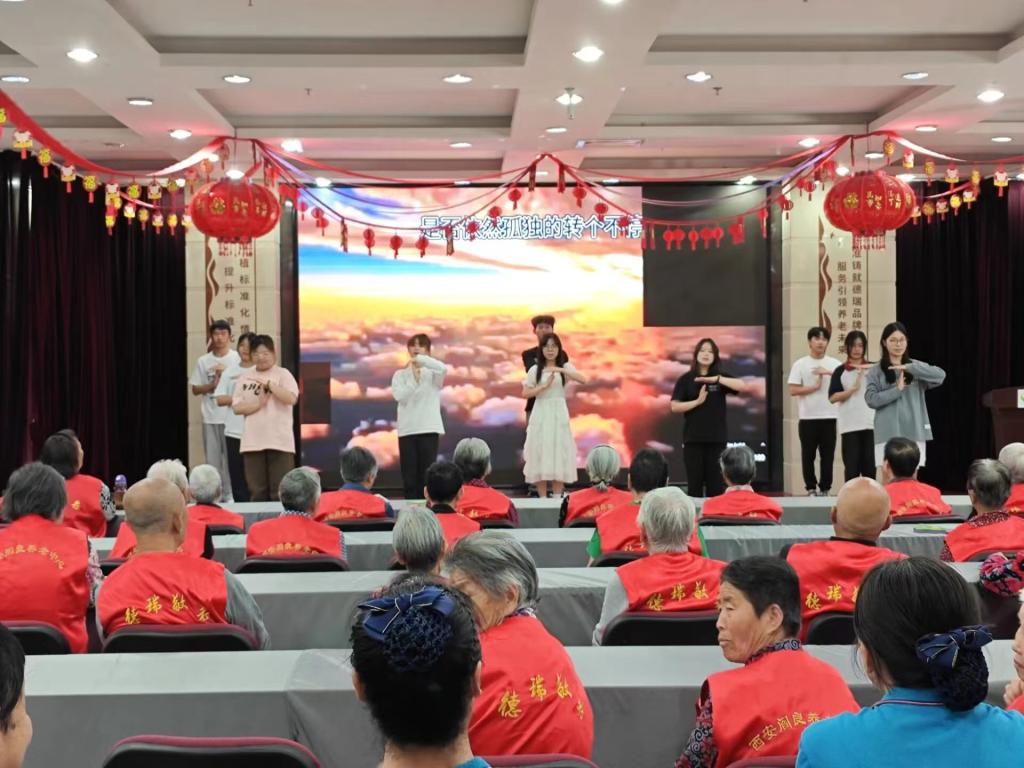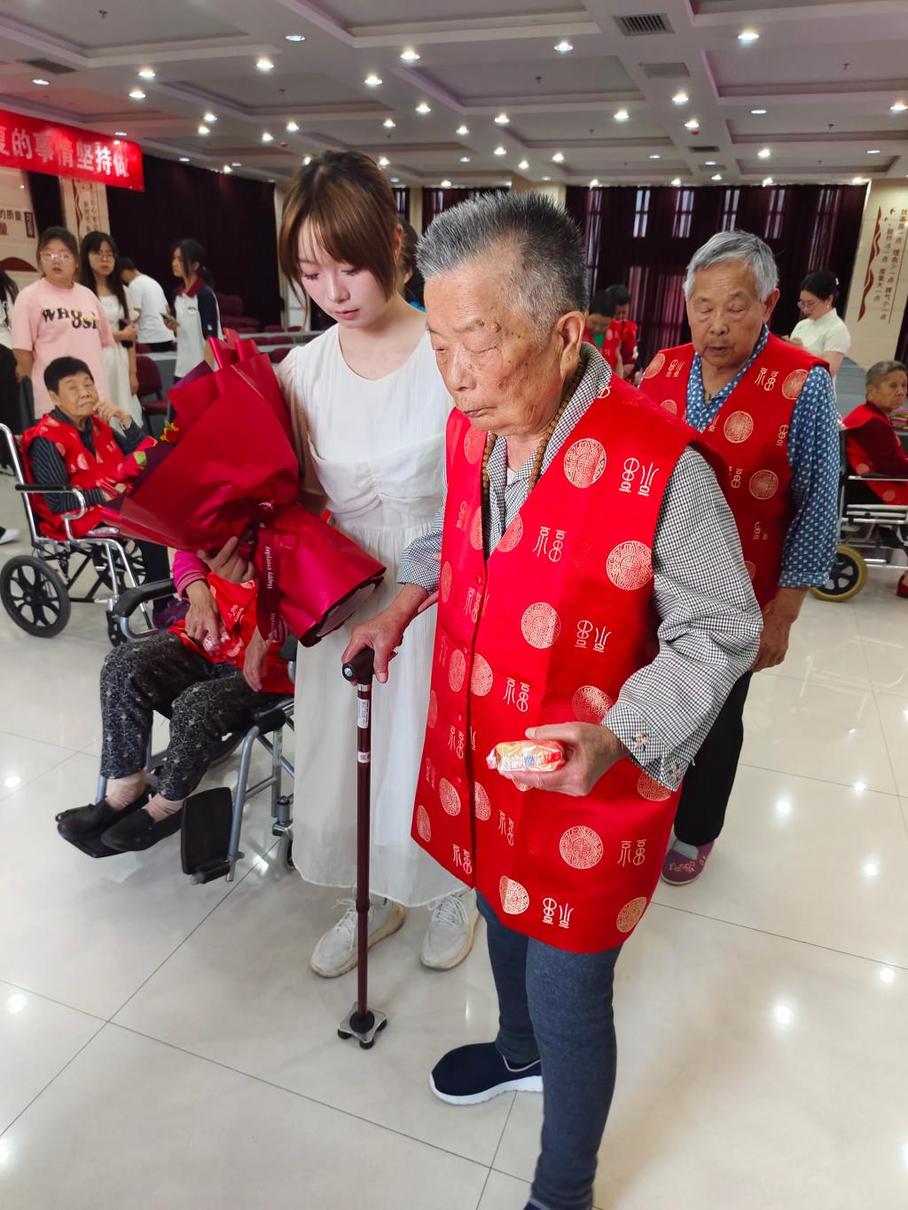 党员志愿者中队联合公司文艺部精心准备了丰富多彩的文艺演出,为老人们带去欢乐和笑声。歌曲《童年》、朗诵《母亲是一种岁月》、手语操《相信明天会更好》、歌曲《萱草花》,赢得了全场观众的掌声,老人们个个脸上洋溢着幸福的笑容。表演结束后,志愿者和工作人员将精心准备鲜花、小礼品一一送到老人手中。