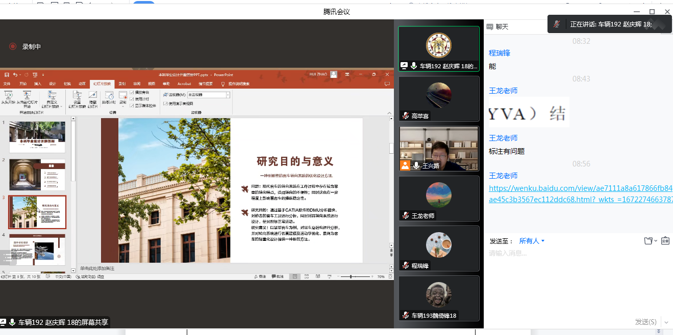 2023届本科毕业设计工作于2022年11月份启动以来,按计划完成了毕业设计动员会、指导教师出题、专家审题、撰写任务书、员工盲选题目等环节。原计划12月初完成开题答辩工作,但考虑到疫情防控、研究生考试的具体情况,公司对开题答辩工作进行了调整。12月29日和30日,车辆工程专业分5组、汽车服务工程专业分4组分别完成毕业设计开题答辩工作。员工从选题的目的和意义、国内外现状的研究及个人毕业设计主要内容和任务安排通过线上PPT进行介绍,答辩教师通过询问问题检查员工对题目的认识和理解是否合适,并给出建议和意见,各答辩小组秘书将员工答辩情况进行详细记录和反馈。整个答辩过程井然有序,反映出车辆工程和汽车运用教研室组织缜密,安排合理。