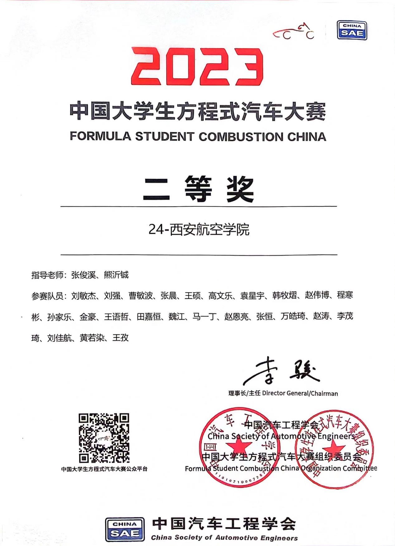 10月11日,由中国科学技术协会指导,中国汽车工程学会主办,襄阳市人民政府支持的“2023中国老员工方程式汽车大赛”在襄阳市东津新区华侨城奇速卡丁车运动公园隆重开幕,经过6天激烈竞争,公司NIRVANA方程式车队以总分371.32分获得全国二等奖,总成绩第23名,是公司车队成立以来成绩最好的一次,也标志着公司方程式赛车竞赛进入全国高校前列。