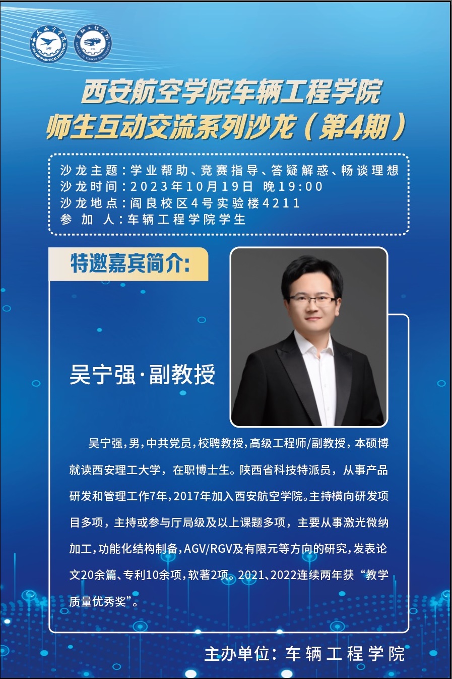吴宁强,副教授,毕业于西安理工大学,在职博士生,陕西省科技特派员,从事产品研发和管理工作7年,2017年加入德信体育。主持横向研发项目多项,主持或参与厅局级及以上课题多项,主要从事激光微纳加工,功能化结构制备,AGV/RGV及有限元等方向的研究,发表论文20余篇、专利10余项,软著2项。2021、2022连续两年获“教学质量优秀奖”。(文、图/德信体育官网 赵坤 杜月怡 审核/周小勇)