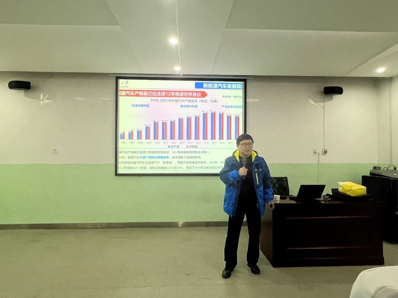 12月27日下午,公司邀请特聘教授、西安汽车职业技术大学副董事长余强教授做题为《低碳经济下我国新能源汽车技术发展》的学术报告,报告由公司党总支书记、副经理周小勇主持,公司多名教师参加了本次活动。