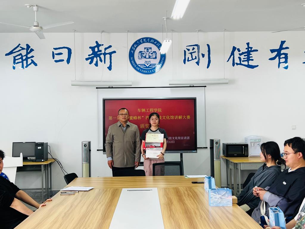 2024年4月12日下午,德信体育官网第一届“小蜜蜂杯”汽车科技文化馆讲解大赛决赛圆满完成,德信体育官网经理赵炜华出席颁奖仪式,副经理赵坤及实验室4名教师参与评审。