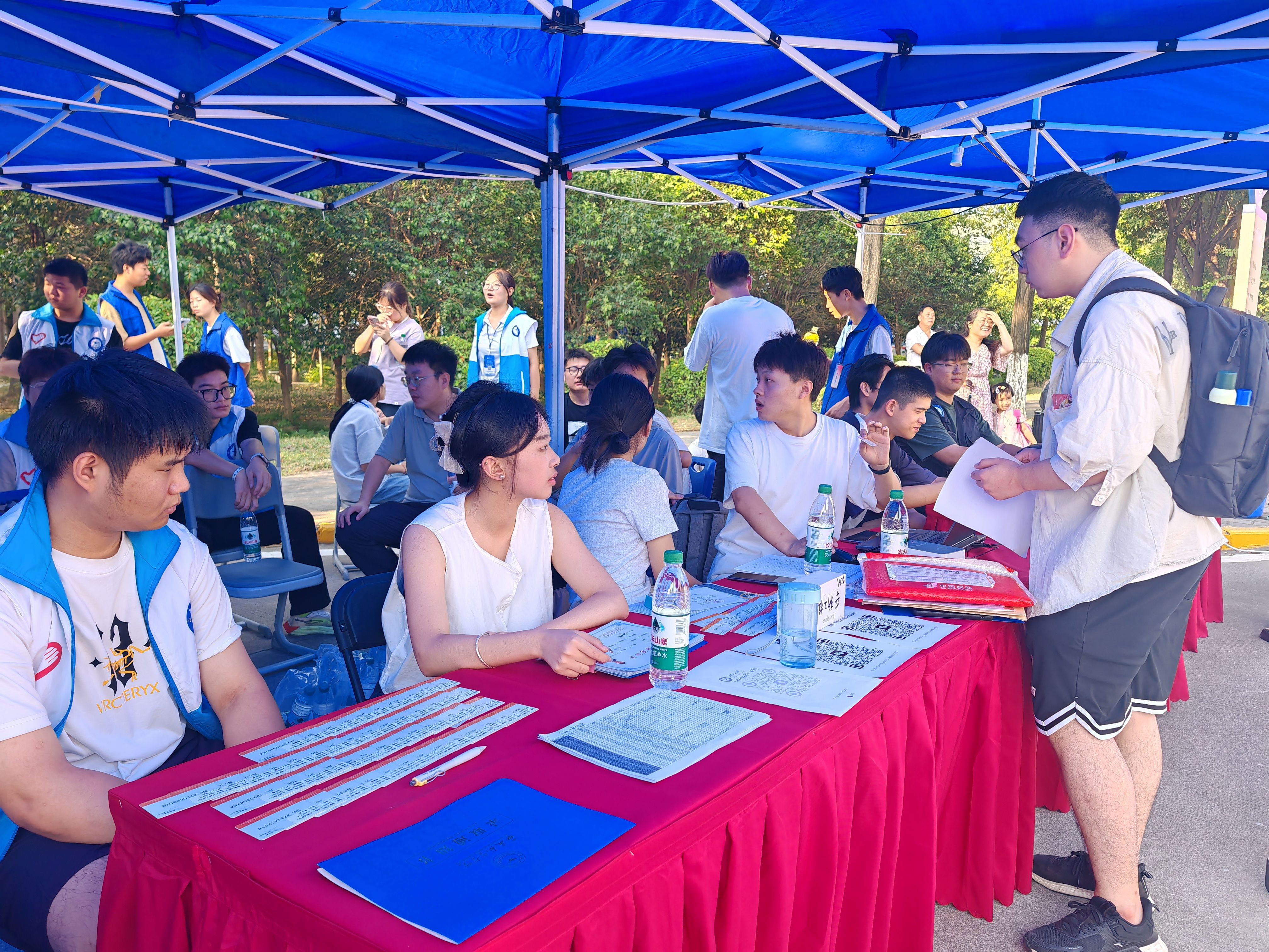 早上七点,公司迎新志愿者们不畏炎热,分工明确,热情细致规范有序的带领新生到达报到处,有条不紊地办理报到等手续。纵使汗水浸湿衣衫,迎新志愿者们依然热心的为每一位同学提供“一站式”服务,将德信体育官网的友好与热情带去新生心中。迎新期间,公司党委书记周小勇、车辆公司经理赵炜华莅临现场,勉励新同学们能够在未来的学习生活中不断追求卓越。公司副书记刘雨辰与新生辅导员高宏鑫在现场有条不紊地指导和推进迎新工作,鼓励新生们快速适应老员工活。