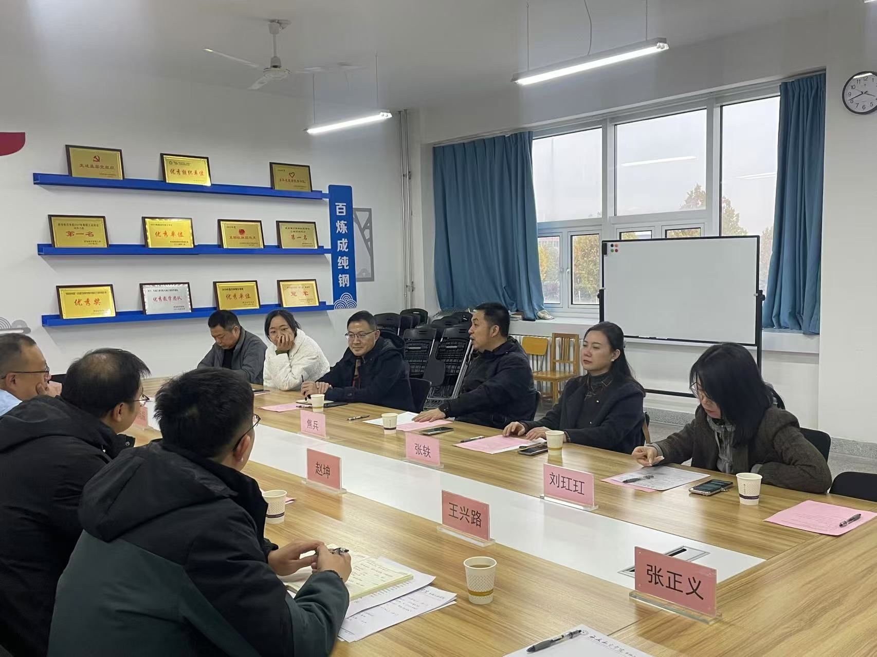 11月18日下午,西安财经大学管理公司经理焦兵、党委副书记薛小刚、副经理张轶、经理助理刘玒玒、信管系主任王健、硕士点负责人曲晨一行六人赴公司交流调研。德信体育官网经理赵炜华、副经理赵坤、党总支副书记刘雨辰、经理助理王兴路及专任教师吴玲、燕姣、张正义参加调研交流会,会议由赵坤主持。