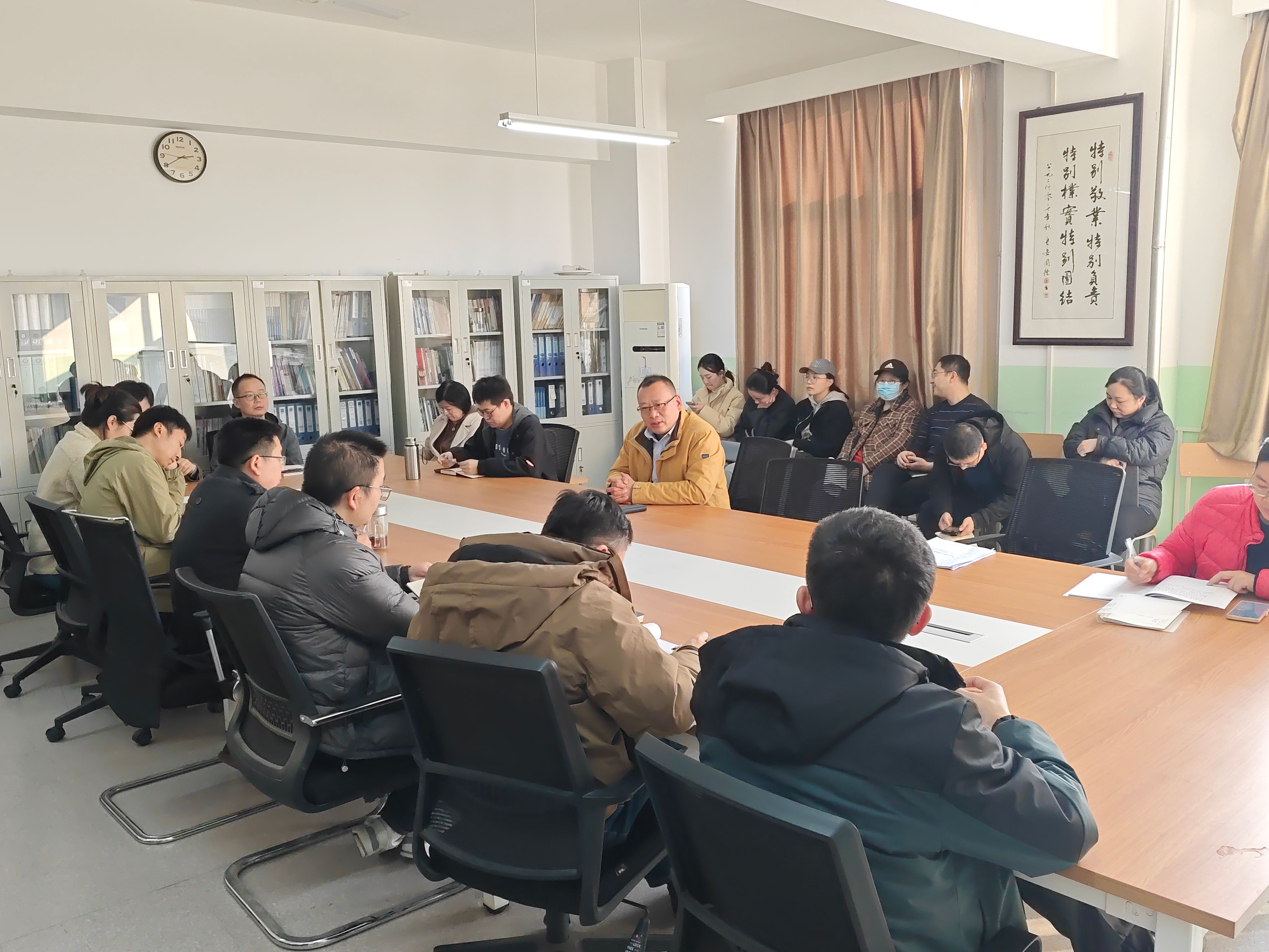 最后,副经理赵坤传达了公司教务处最新会议精神,要求全体教职工积极开展公司产品规范化专题培训活动,通过全院集中学习、教研室分散学习和个人自学的形式,努力做到对现有的教学制度、教学规范了然于胸。同时,他还要求教师要以员工为中心,多关心员工,特别是学习能力弱的员工,要主动加强课后辅导。